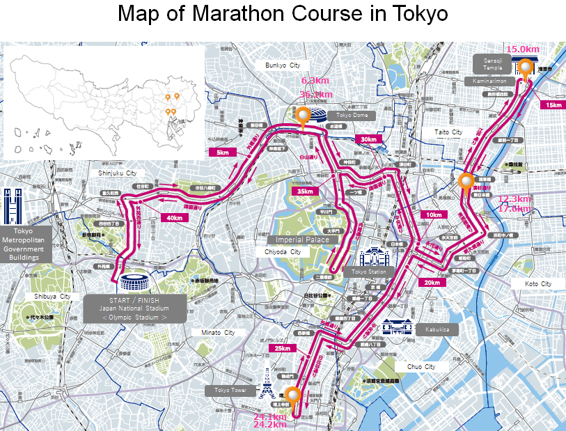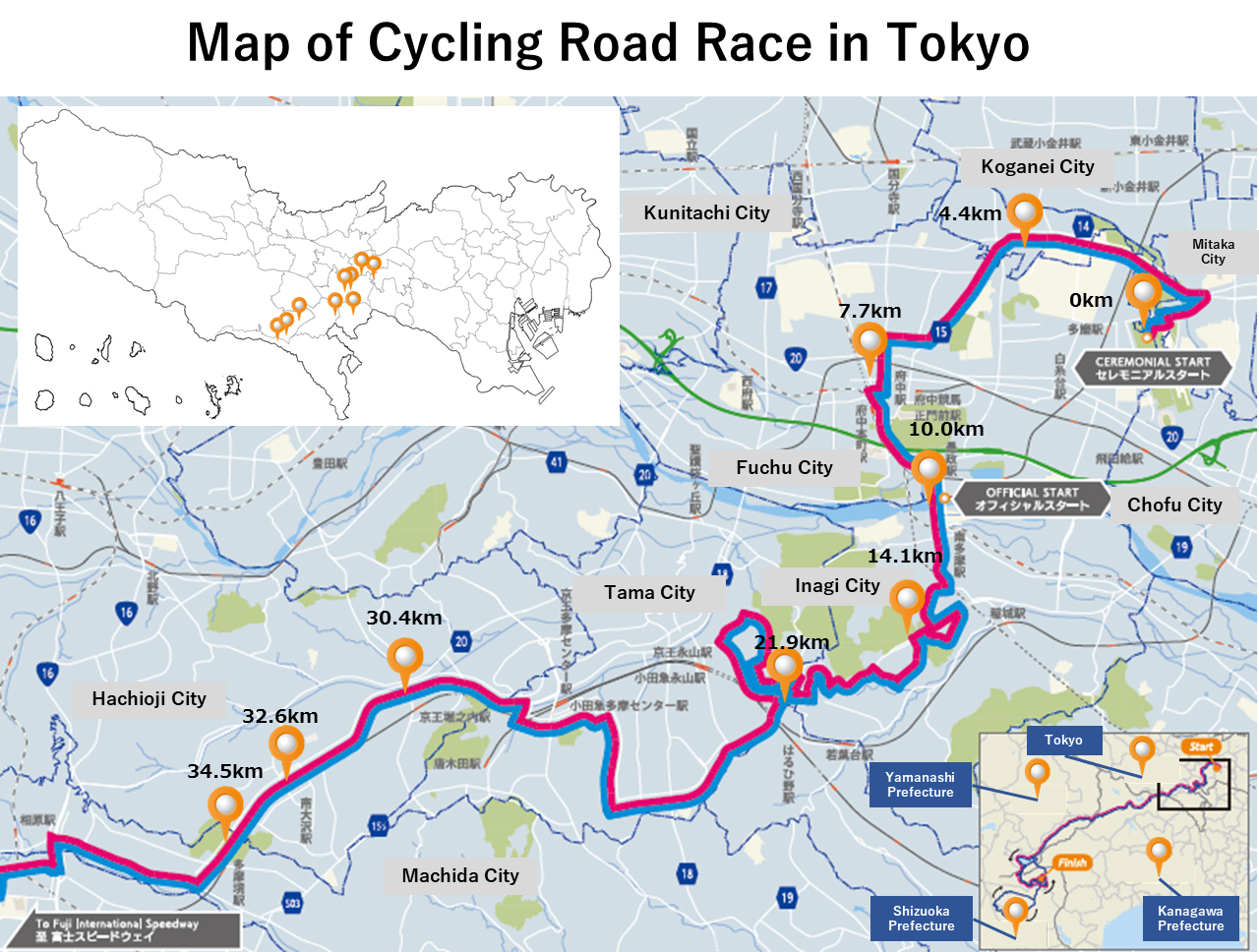 Olympic Games Tokyo2020 Cycling Road Race Course Route Marker Guide Map