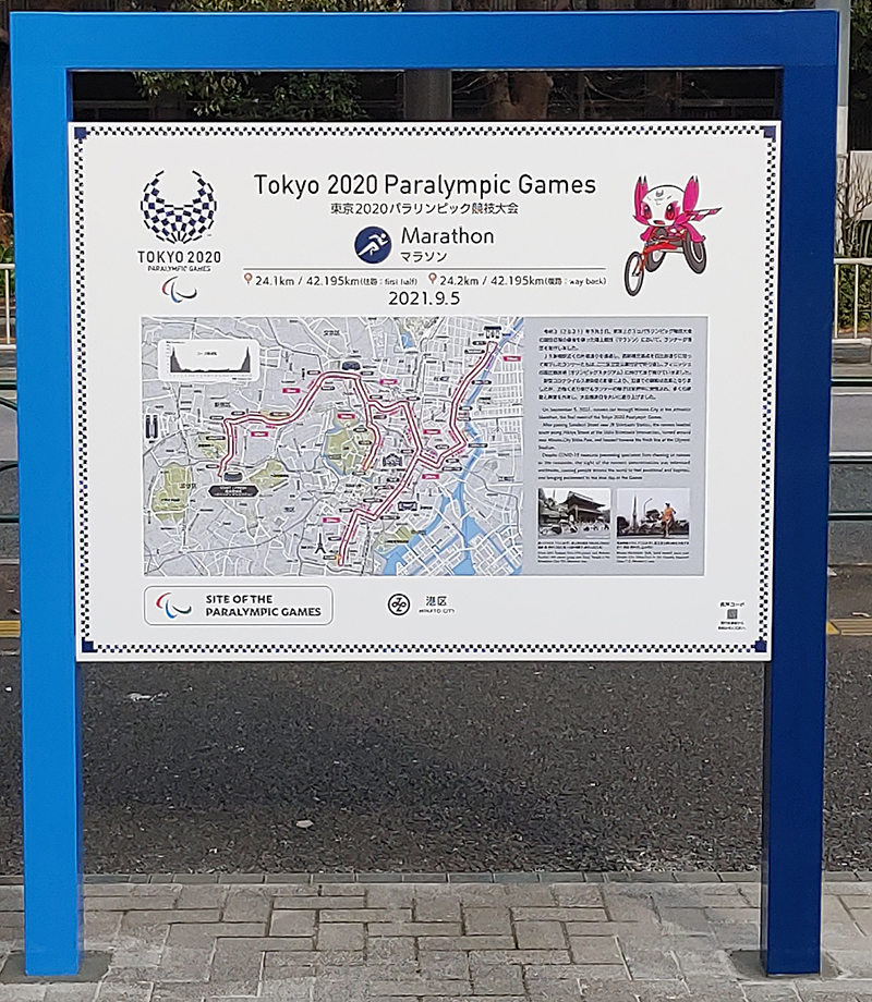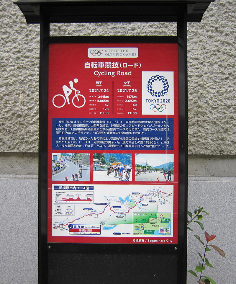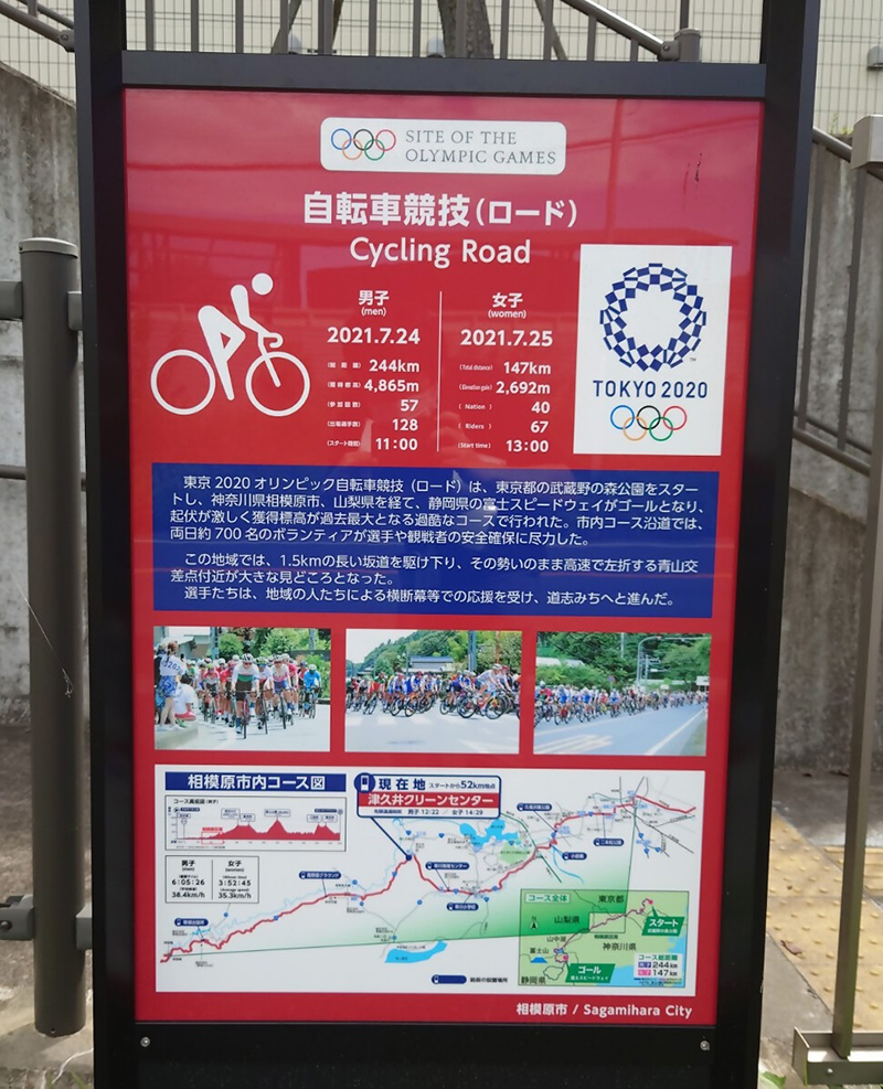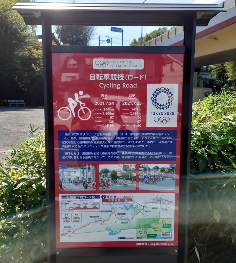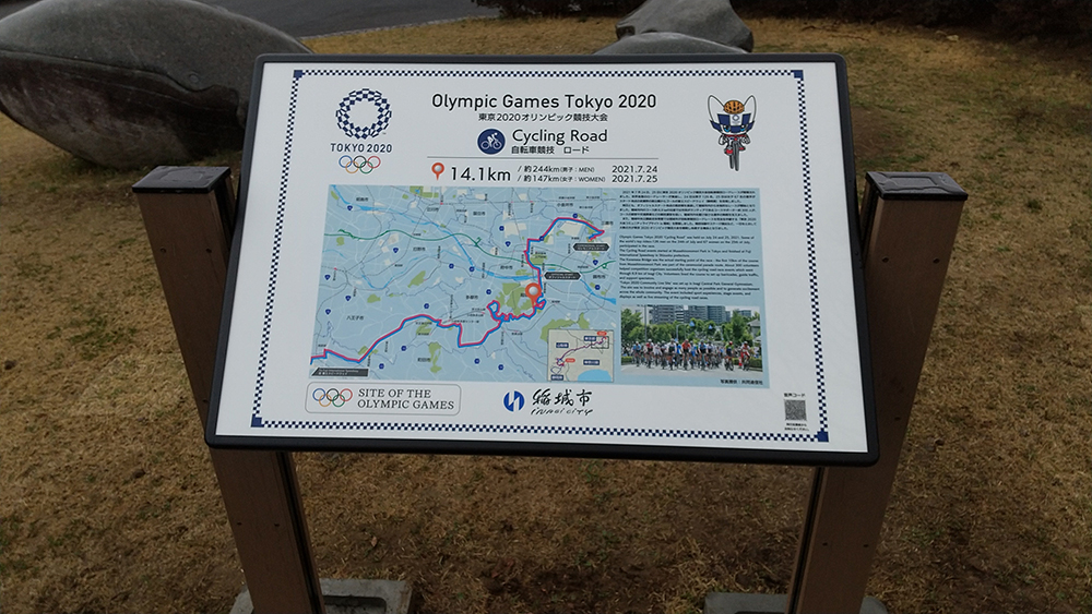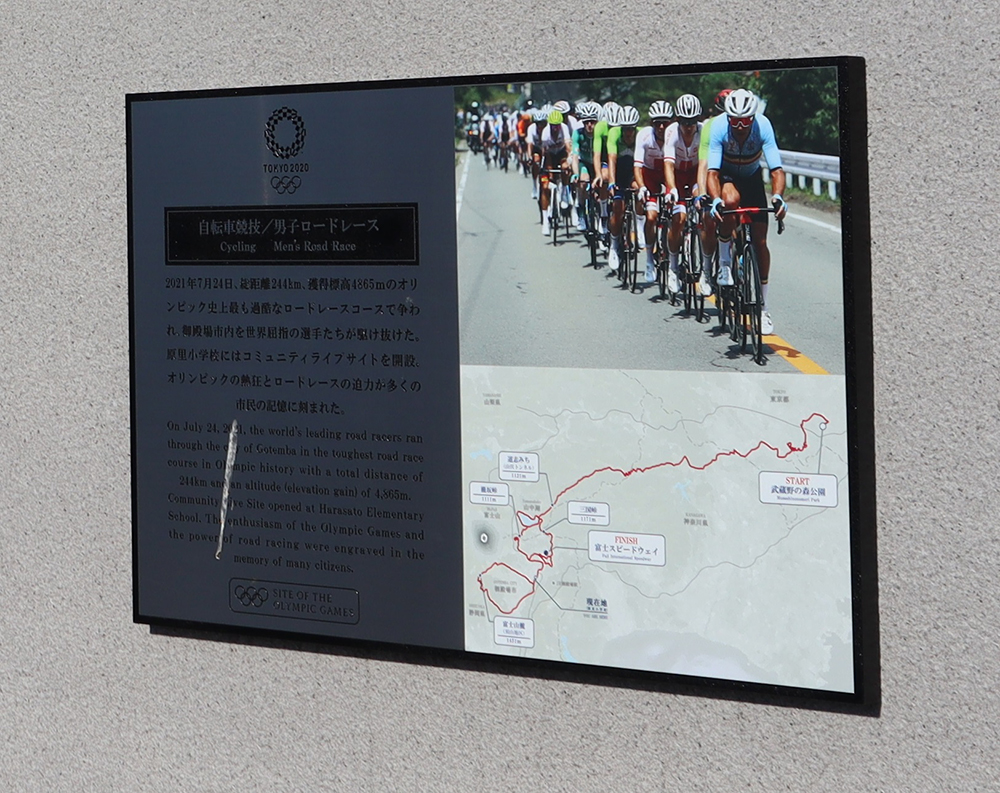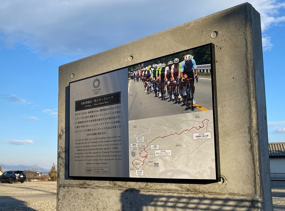 In order to pass on the memories and significance of the Tokyo2020 Games to future generations, commemorative markers have been placed on the roads, etc. where the cycling road race course took place.