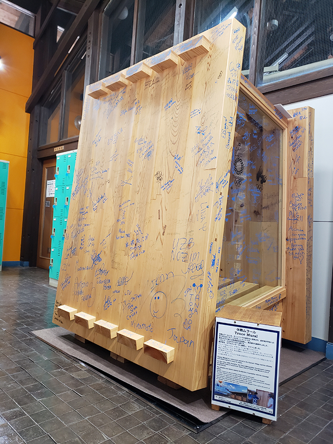 During the Tokyo 2020 Games, the Olympic Truce Mural and the Paralympic Mural, were installed in the Olympic and Paralympic Village using wood produced in Tama, west of Tokyo. They will be installed in the Tokyo Metropolitan facilities as a legacy of the Games to convey a message of peace and harmony, the success of athletes, and the charm of Tama lumber.