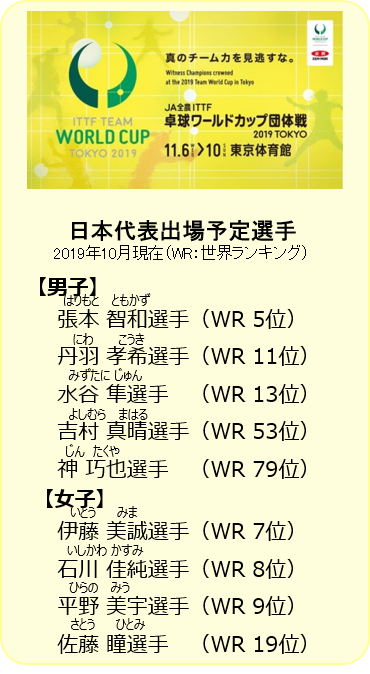 JA全農 ITTF 卓球ワールドカップ団体戦 2019 TOKYO 男女準決勝