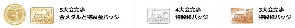 当日会場にて、全5大会中3大会以上完歩した方に、完歩した大会の数に応じて、大会記念品を贈呈します。