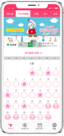 ・ラジオ体操動画を視聴すると、カレンダーの該当日にスタンプが表示されます。