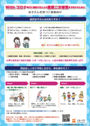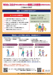 外出を控える方が増加した結果、運動不足やストレスから、心身に悪影響をきたす健康二次被害の問題が生じてきております。