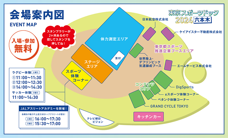 体力測定等を通じて体の状況を把握し、スポーツの継続的な実施や健康増進を目指すイベント「東京スポーツドック2024」を、六本木ヒルズアリーナで開催します。会場では、体力・体組成測定のほか、子供から高齢者まで、スポーツの楽しさを体感できるプログラムを実施します。ご来場をお待ちしております!