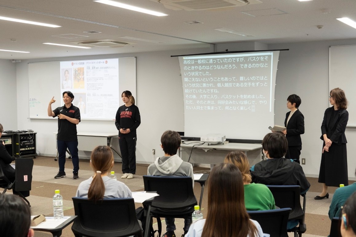 須田強化委員長(以下、須)/私がバスケットを始めたのは、実は大学からでした。それまでは小学校2年生から空手をしていました。高校は一般校に通っており、聞こえないということもあって、集団競技は難しいのではという状況に置かれ、個人競技の空手をずっと続けていました。