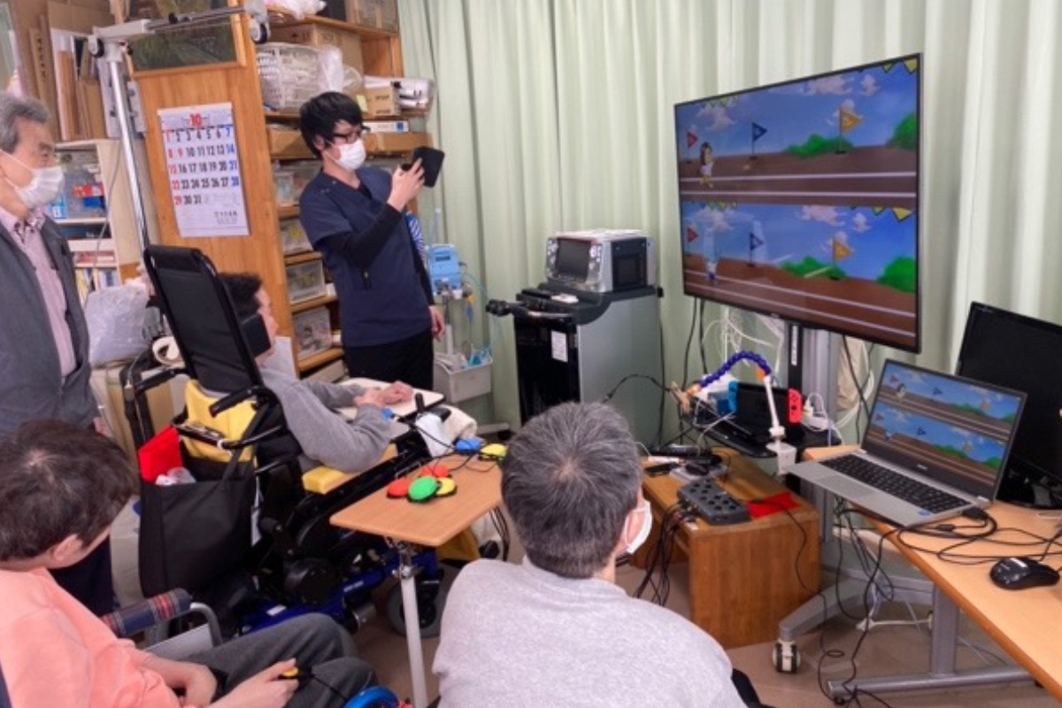 個々の状態に合わせた機器を使用することで、障害のある方が自分自身で操作して、パソコン上で徒競走や玉入れなどのスポーツ対戦を楽しむことができます。 参加施設を公募し、応募のあった施設から前期5施設、後期5施設の計10施設に参加いただいています。