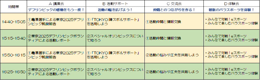 「東京デフリンピックからひろがる未来」と題して、東京 2025 デフリンピックの振り返りやそのレガシー、2026年開催予定のスペシャルオリンピックス 2026 東京等について、トークセッションを行います。