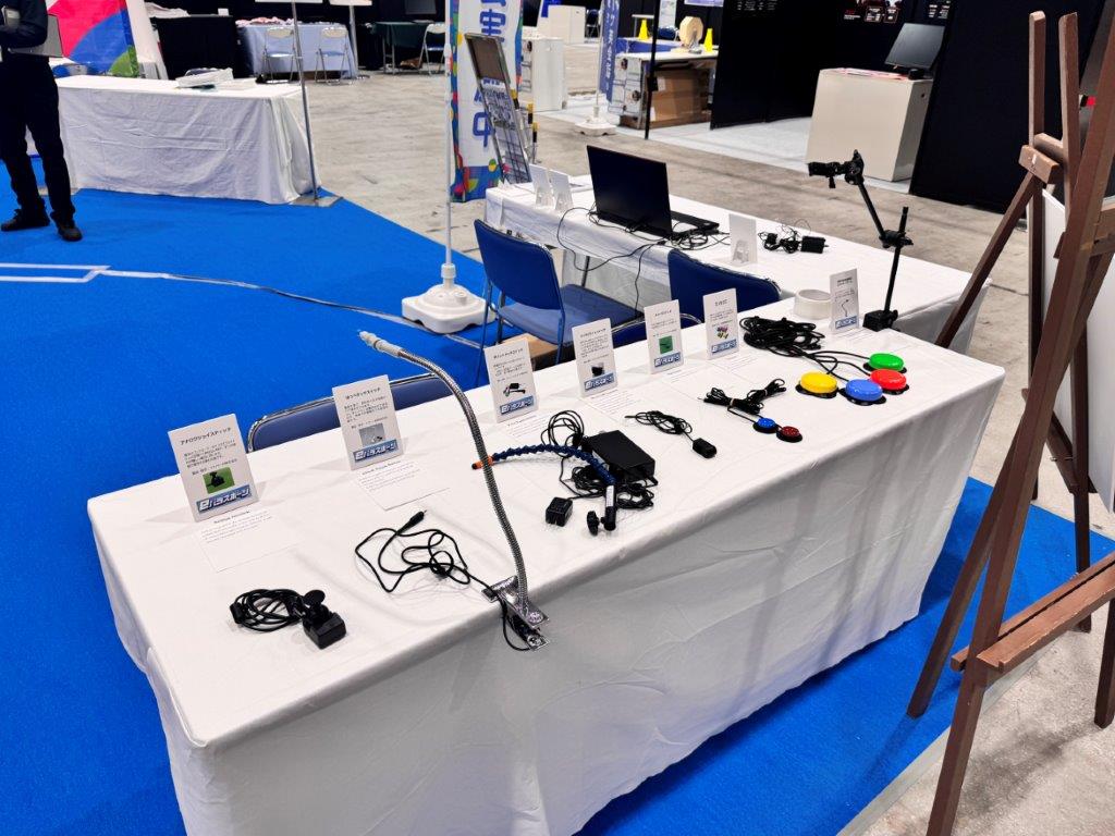 障害のある方が操作できるように加工、開発されたコントローラーを展示しました。