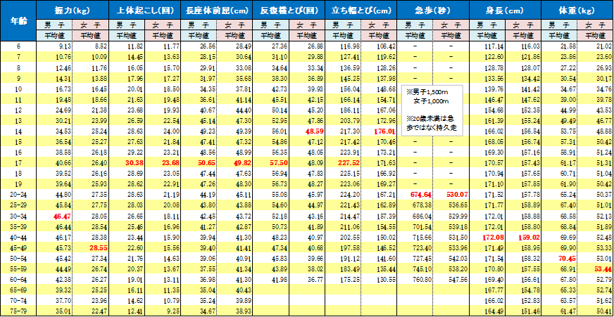 まずは知ってみましょう、自分の体力年齢。同世代におけるランキングも確認できます。