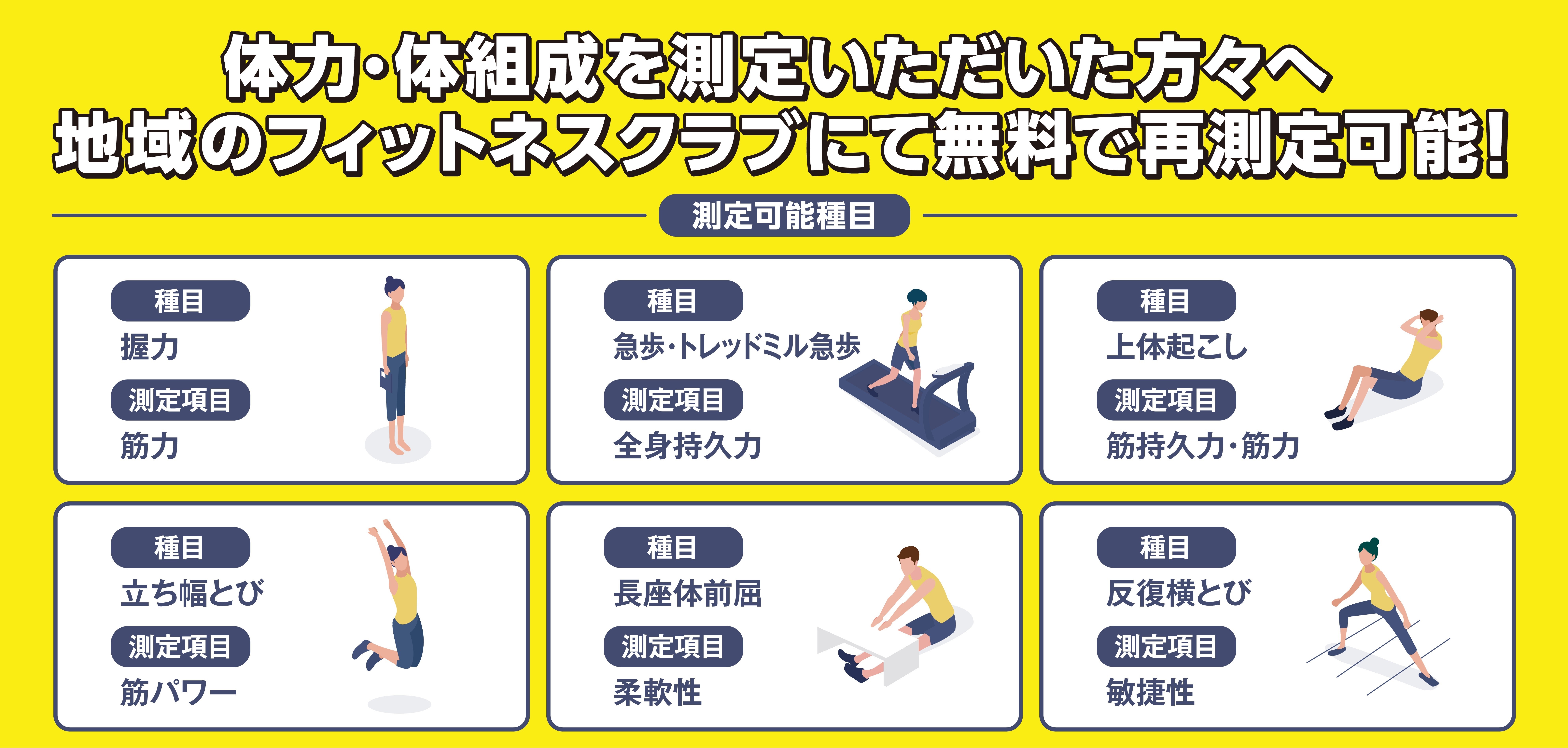 ☆★参加者の皆様に地域のフィットネスクラブで再測定ができるチケットを特別にお渡しします★☆